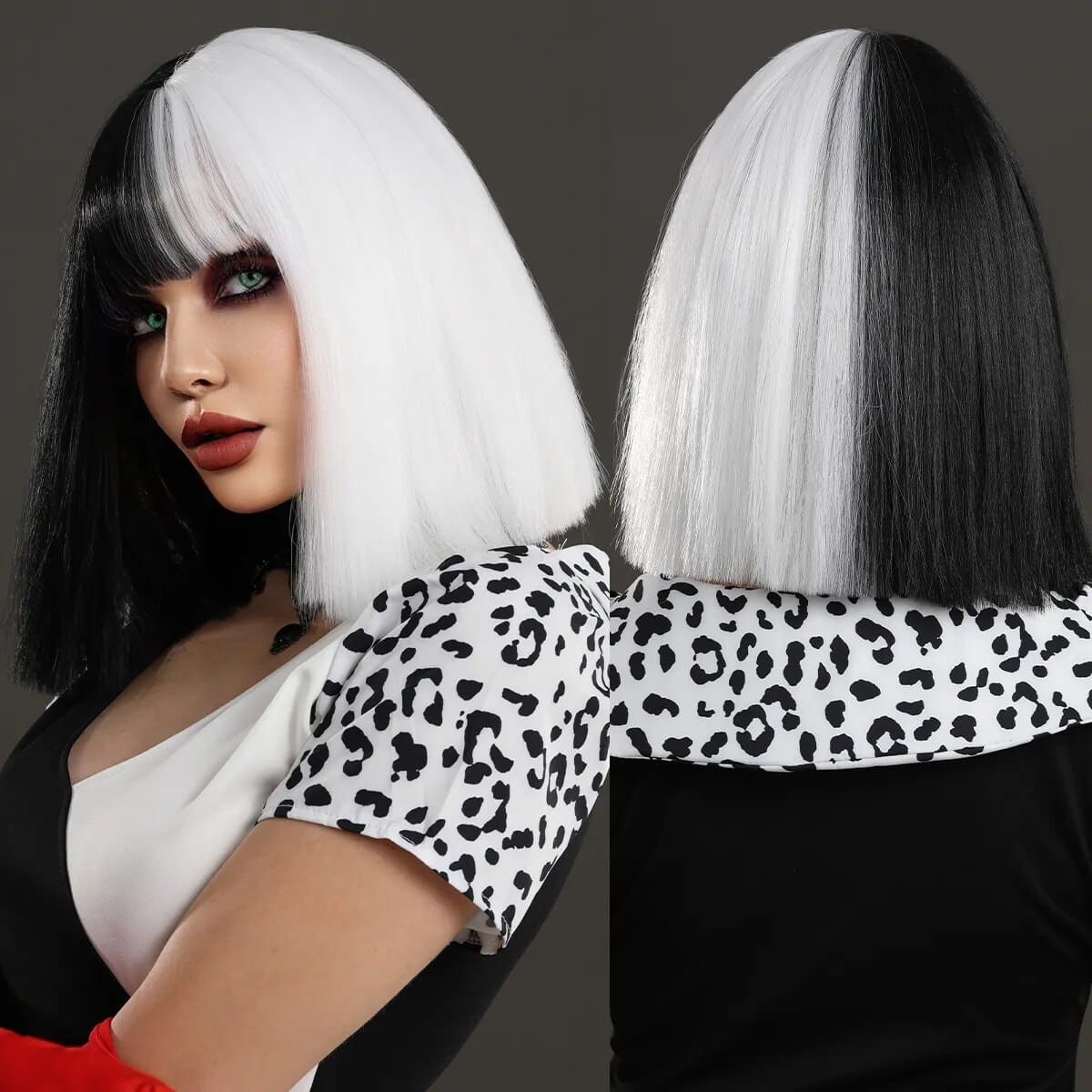 Cette perruque noire et blanche de Cruella est l’accessoire parfait pour compléter votre déguisement effrayant lors de soirées à thème, d’Halloween ou de tout autre événement costumé. Avec sa longueur qui atteint les épaules, cette perruque ajoute une touche mystérieuse et élégante à votre apparence.