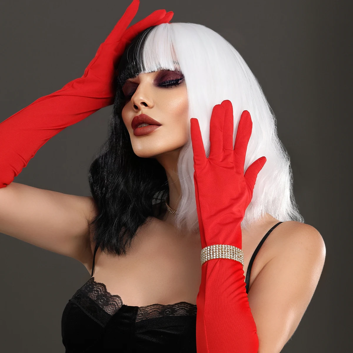 Le kit comprend également des faux cils qui ajoutent une intensité supplémentaire à votre regard. Ils sont faciles à appliquer et complètent parfaitement la perruque, en soulignant vos yeux d’une manière dramatique et envoûtante.