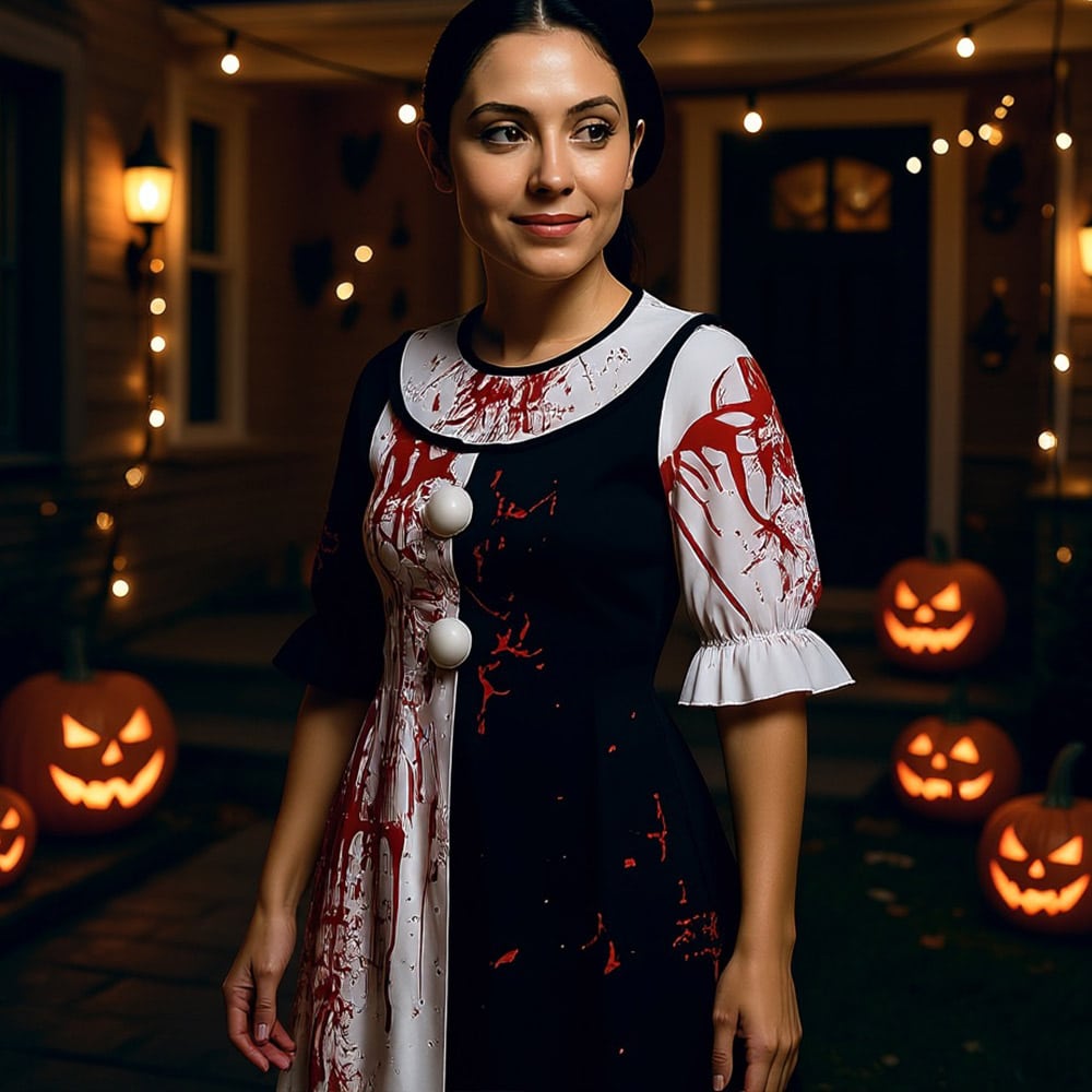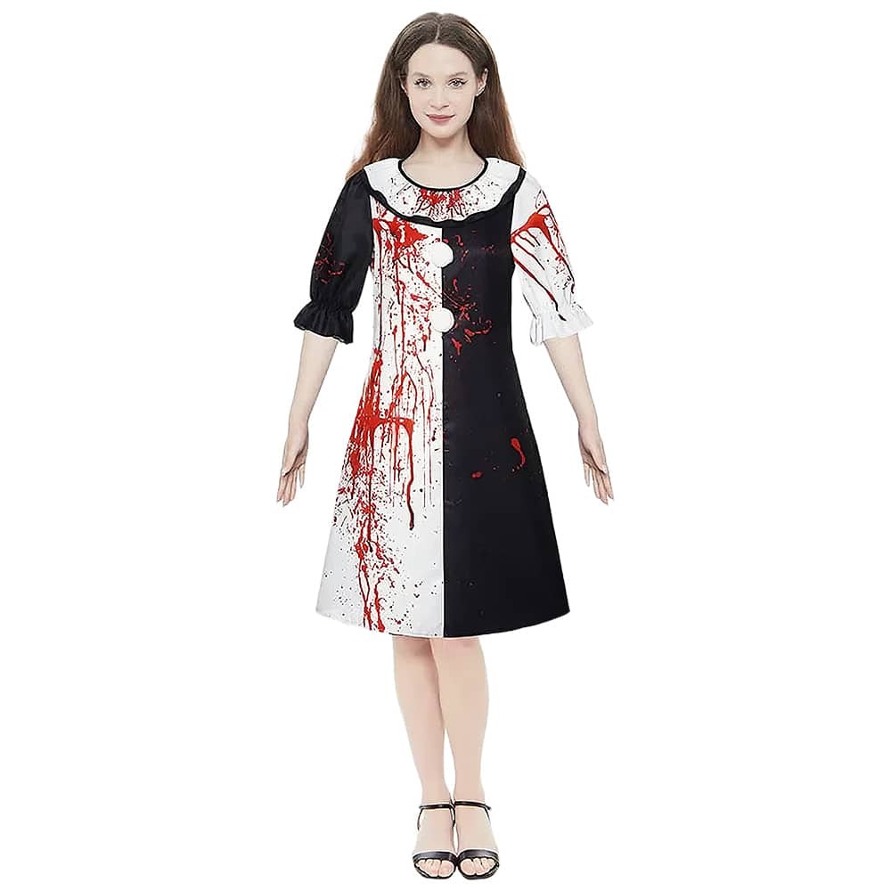 Plongez au cœur de l’univers terrifiant de Terrifier avec cette robe noire et blanche aux éclaboussures de sang soigneusement reproduites. Chaque détail évoque les scènes les plus marquantes du film culte.