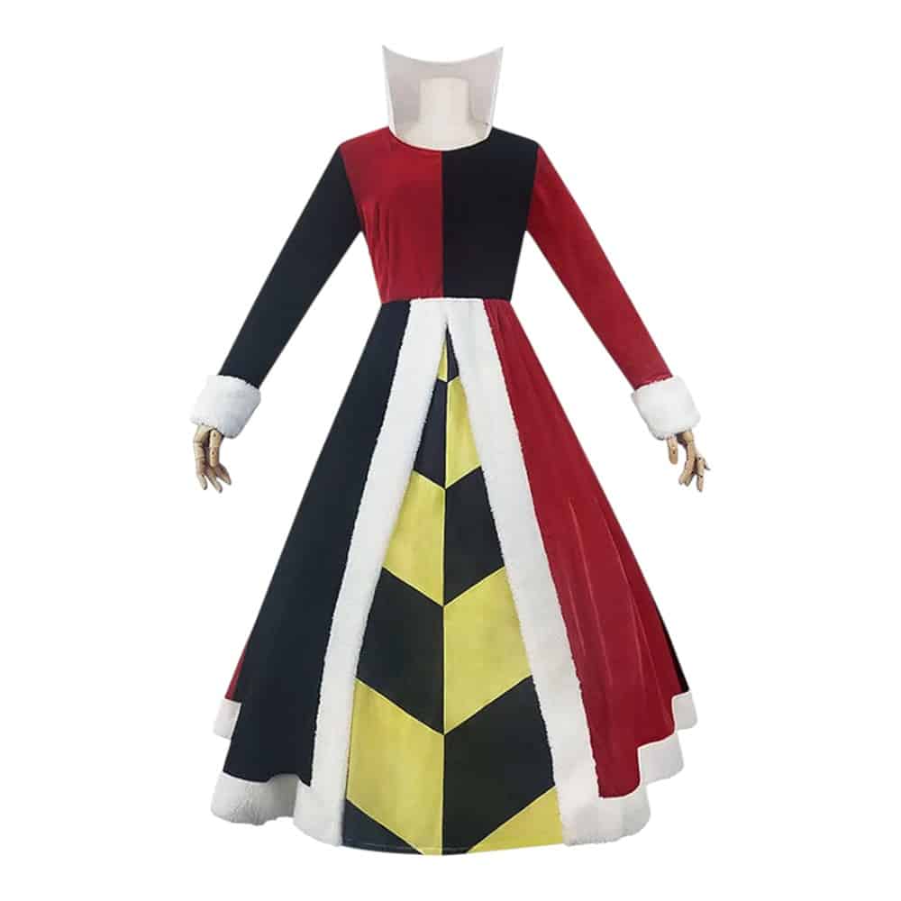 Larges panneaux bicolores, col majestueux, fourrure blanche et nœud parfaitement placé… Ce costume n’est pas juste une tenue, c’est un portail vers un monde où tout devient possible. Vous marchez, vous tournez, et la robe suit le mouvement avec grâce et autorité.