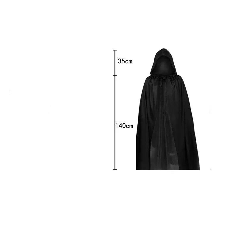 La cape est fabriquée dans un tissu léger, mais opaque, ce qui lui confère un aspect flottant lorsqu’elle est portée. Sa couleur noir intense renforce l’aura sombre et sinistre de la Faucheuse. La faux est un accessoire indispensable pour compléter ce costume.