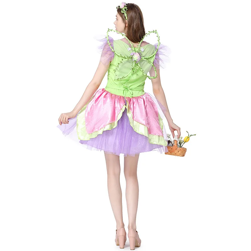 Lorsque vous enfilez notre déguisement de fée rose, la magie s’opère instantanément. Chaque détail, des ailes transparentes au liseré vert jusqu’au serre-tête orné de feuilles et de fleurs, a été pensé pour vous transformer en une fée sortie d’un rêve.