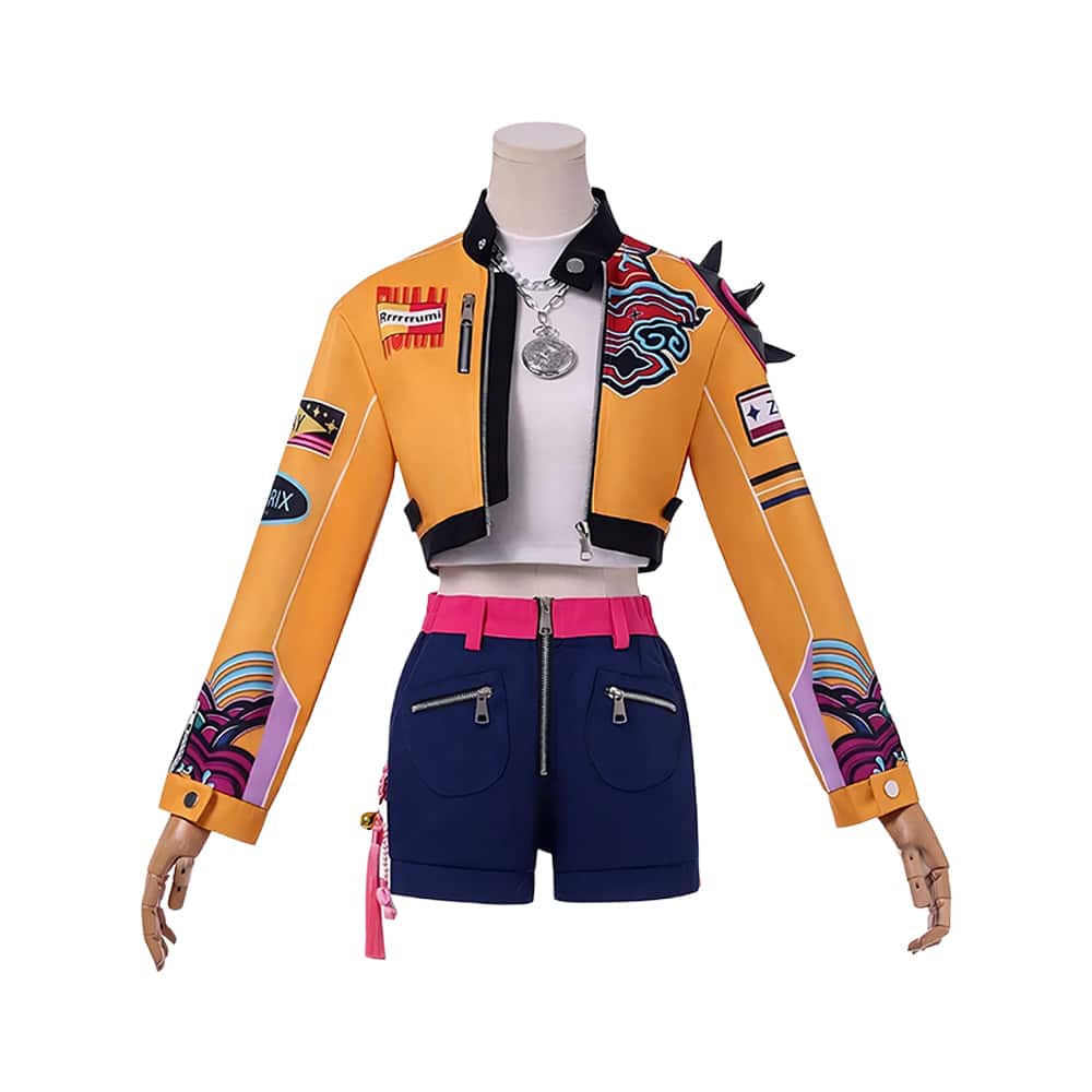 Vous aussi vous finissez par connaître par coeur toutes les chansons des Huntr/X depuis que votre fille a découvert l’univers K-pop Demon Hunters ? Cette reproduction du costume de Rumi rassemble exactement ce qu’elle attend : la veste jaune aux imprimés caractéristiques, le crop top signature et le short ajusté.