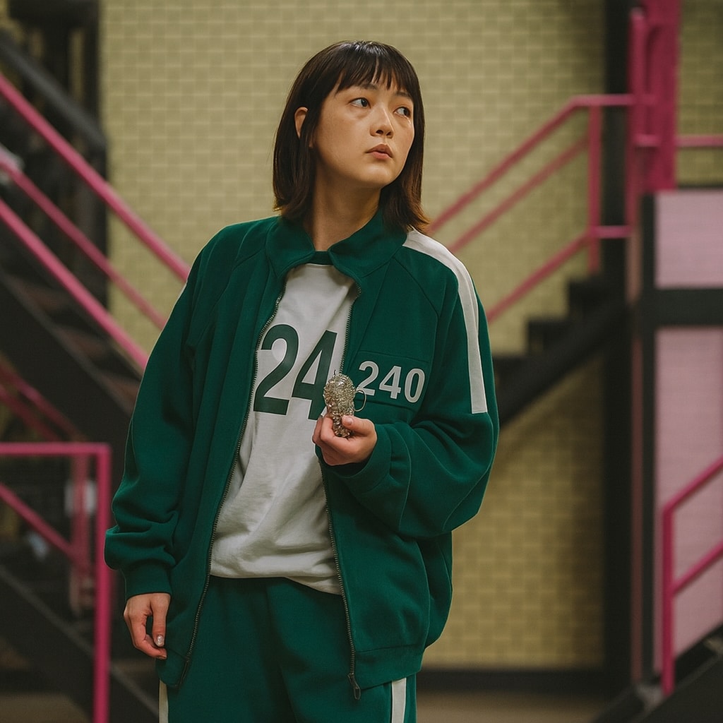 Soyez la star du quartier avec le tout nouveau déguisement Squid Game et faites place à votre ingéniosité devant les gardes impitoyables.