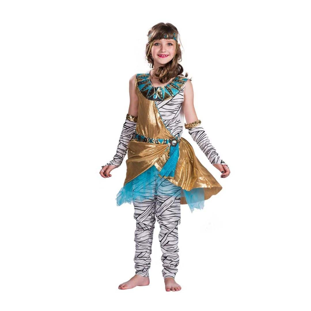 Ce déguisement est conçu avec des détails époustouflants qui évoquent le glamour et la grandeur de la célèbre reine égyptienne. Le costume se compose d’une robe longue, élégante et fluide, qui est fabriquée à partir de tissus de qualité pour assurer un confort optimal tout au long de la journée. Parfait pour votre fille !