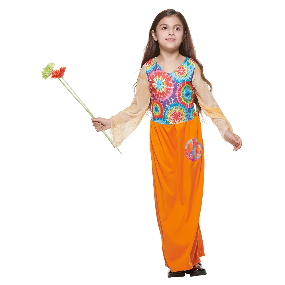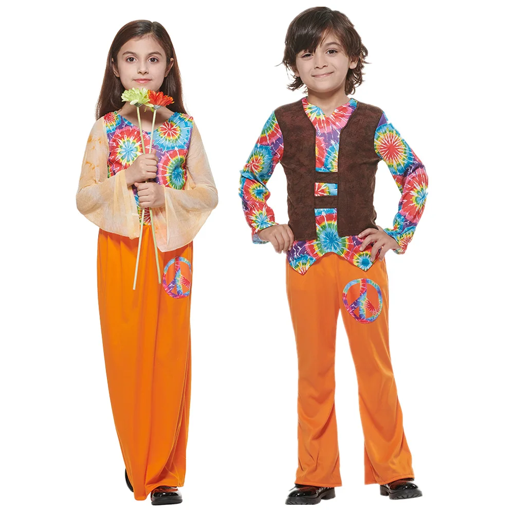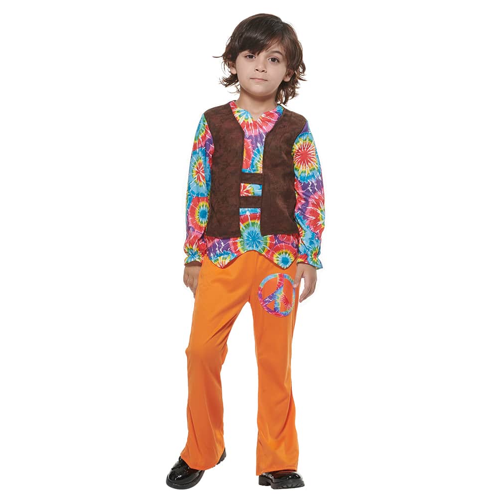 Pour les filles, le déguisement comprend une magnifique robe bohème. Dotée de motifs psychédéliques et d’imprimés multicolores, cette robe évoque l’ambiance joyeuse des festivals d’autrefois. Avec ses manches longues et sa taille ajustée, elle offre à votre enfant du confort tout au long de ses aventures.