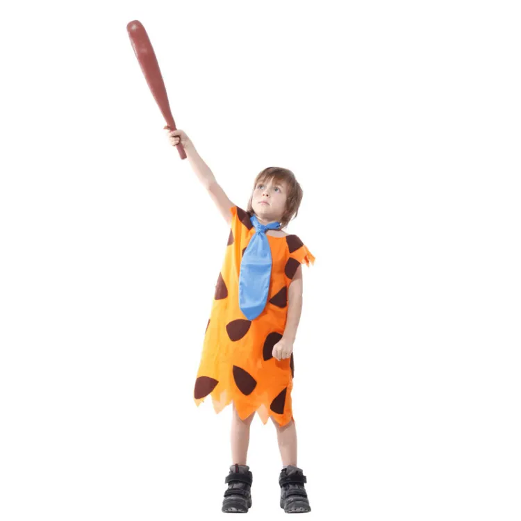 Il est composé d’une robe en tissu orange vif, cette tenue attire immédiatement l’attention avec son imprimé géométrique unique qui rappelle les motifs tribaux de l’époque des hommes des cavernes. Les enfants se sentiront ainsi comme de véritables hommes des cavernes prêts à conquérir le monde.