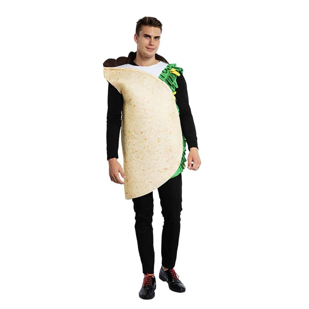 Ce déguisement de tacos mexicain pour adultes est parfait pour les fêtes déguisées ! Il se compose d’un pull en forme de tacos avec du guacamole. Vous pouvez l’accompagner d’un chapeau de sombrero et d’un foulard rouge. Le pull est facile à enfiler grâce à ses manches. Les accessoires que vous ajouterez une touche authentique à votre costume !