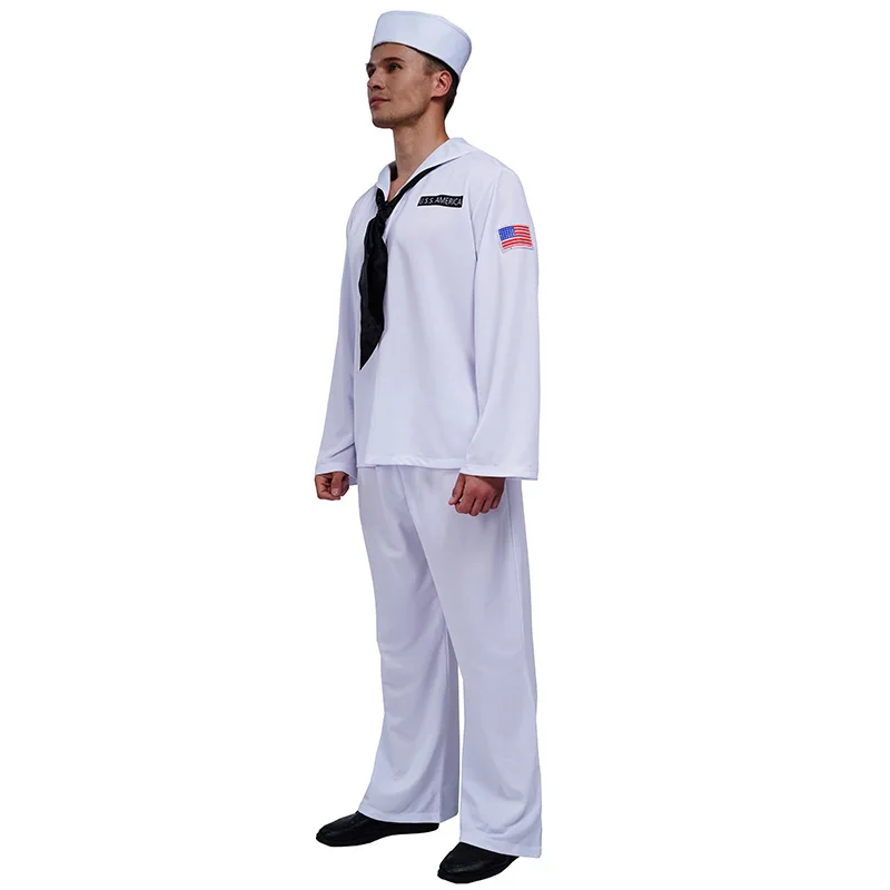 Les appliques sur le bras du drapeau américain et celle de la flotte américaine sur la poitrine, ajoutent la touche finale à ce costume pour une authenticité et un charme accrus.