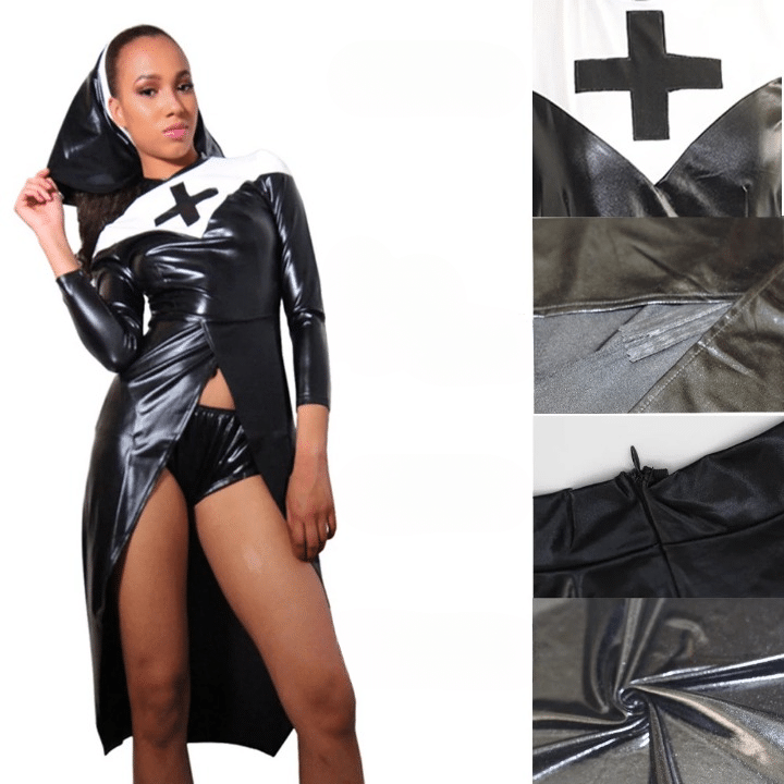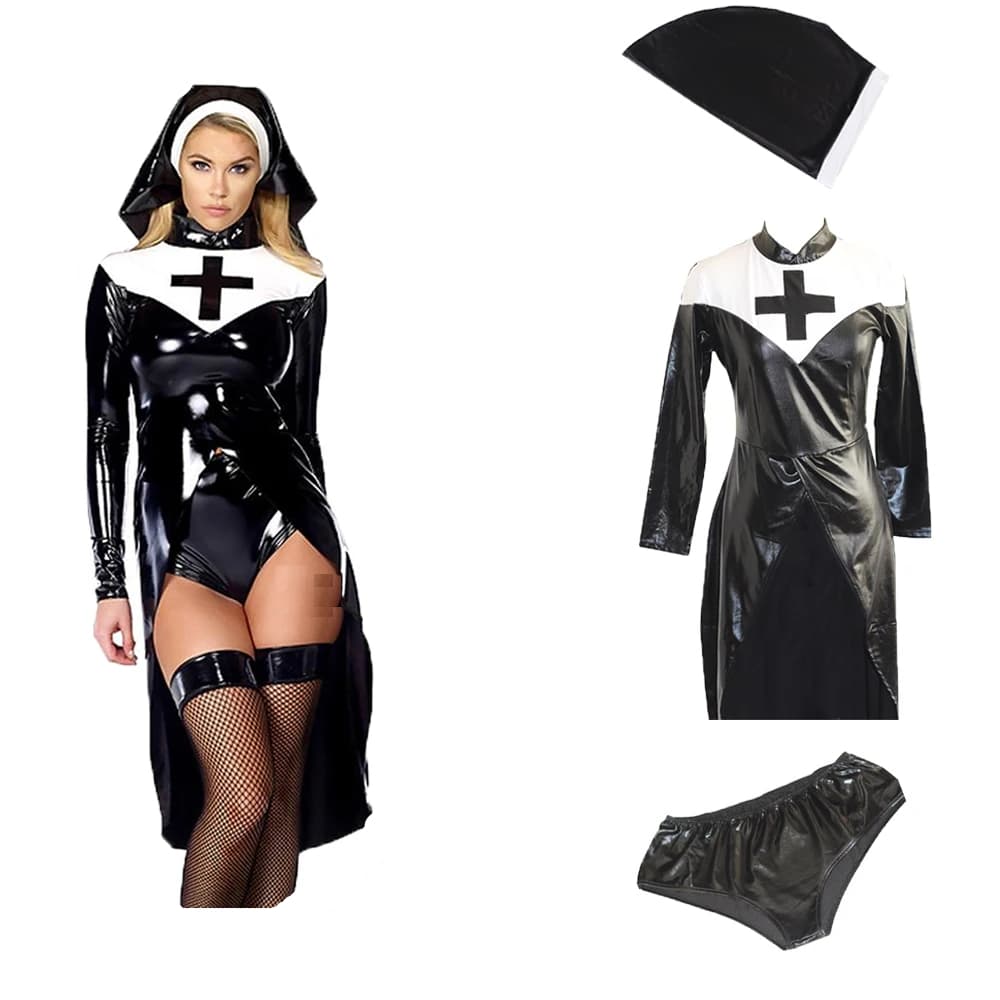 Ce déguisement unique allie l’aspect traditionnel d’une nonne avec une touche de sensualité et de charme. Ce déguisement est idéal pour celles qui souhaitent exprimer leur côté audacieux et sensuel tout en conservant une certaine élégance et une pointe de mystère.